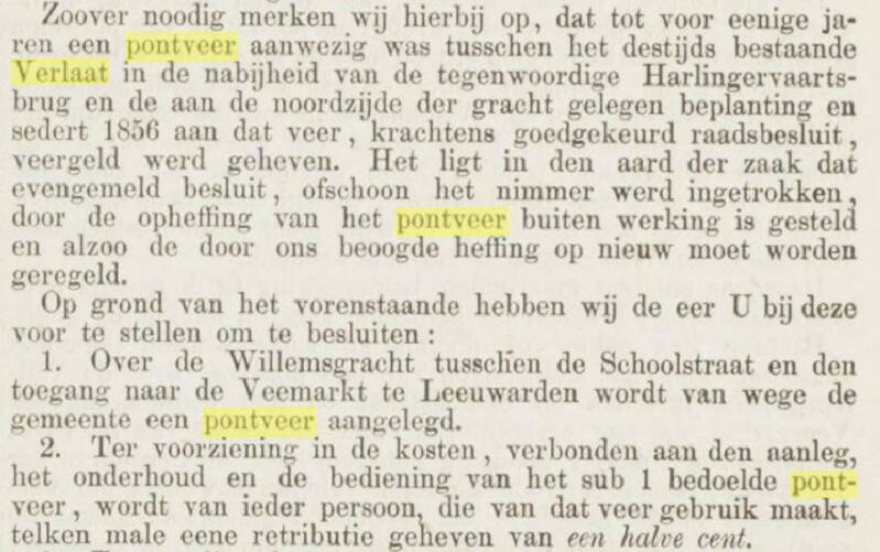BRON; Historisch Centrum Leeuwarden (HCL) GEZOCHT: foto van pontje Hoge Berg (beplanting)/Verlaat (Zuiderbrug/Verlaatsbrug). Dit pontje is het niet.